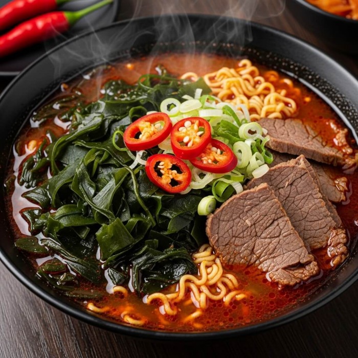 - 베이스: 쇠고기 미역국 라면 1봉지 (또는 일반 라면 + 건미역 1줌)