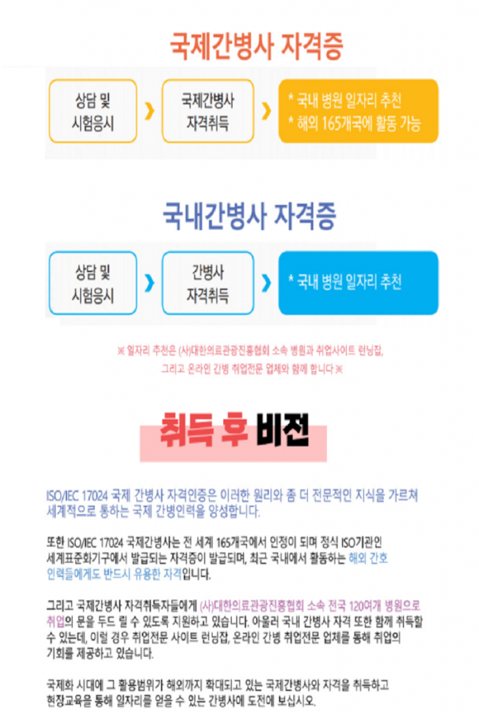 - 상담 및 시험응시 > 국제간병사 자격취득 > 국내 병원 일자리 추천 및 해외 165개국에 활동 가능