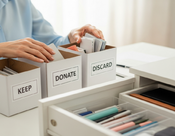 모든 물건을 꺼내놓고 '남길 것', '버릴 것', '보류할 것'으로 분류합니다. 이때 단순히 '필요 유무'뿐만 아니라, '이 물건이 나에게 기쁨을 주는가?', '내 삶에 긍정적인 영향을 미치는가?' 와 같은 질문을 스스로에게 던져보는 것이 좋습니다. '보류할 것'은 일정 기간(예: 3개월) 동안 따로 보관했다가, 그 기간 동안 사용하지 않으면 미련 없이 처분합니다.