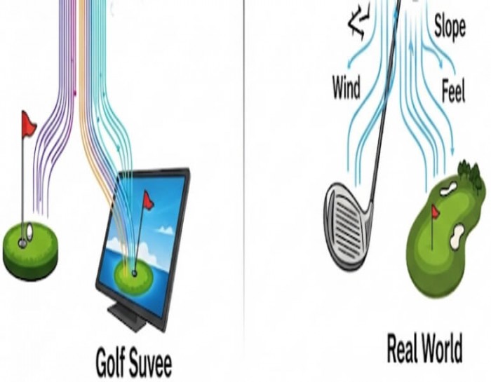 - 자연 환경의 변수: 필드에서는 바람의 방향과 세기, 비, 잔디의 상태(길이, 젖은 정도), 지면의 단단함 등 수많은 자연 변수를 고려해야 합니다. 스크린골프에서는 이러한 변수가 없거나, 단지 수치로만 단순하게 표현됩니다.