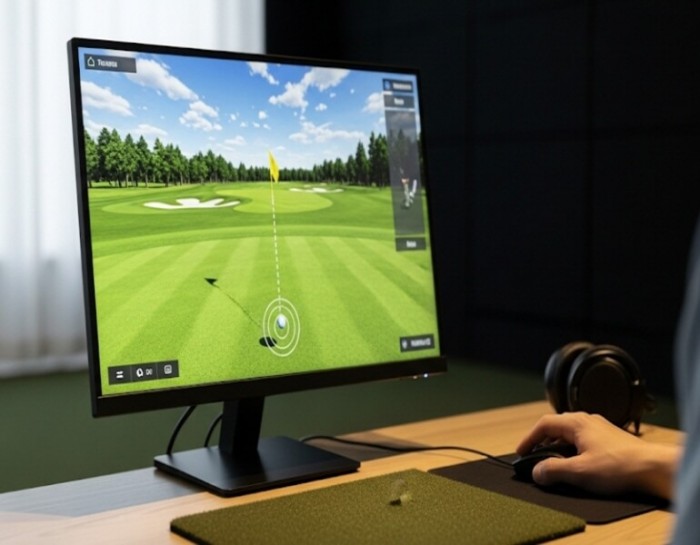 - 어프로치는 굴려라: 스크린의 그린 주변 어프로치는 띄우는 샷보다 굴리는 샷(런닝 어프로치)이 훨씬 더 정확하고 쉽습니다. 피칭웨지(PW)나 9번 아이언을 이용해 퍼팅하듯 굴려보세요.