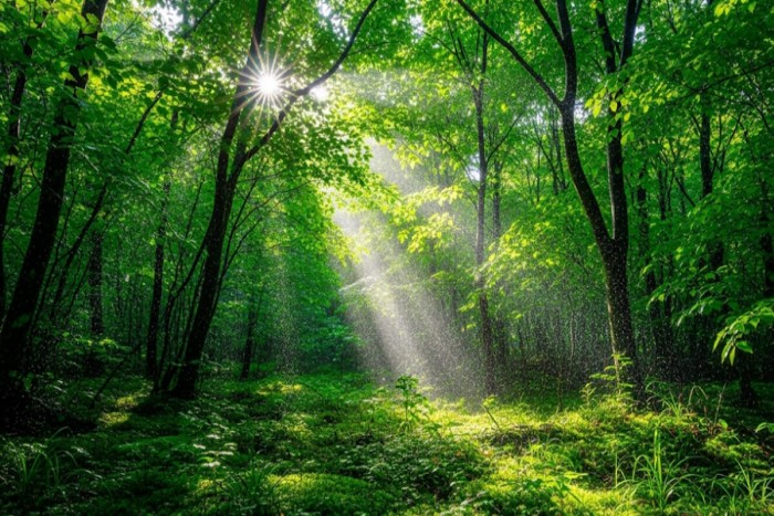 - 빗방울이 맺힌 싱그러운 나뭇잎 이미지
