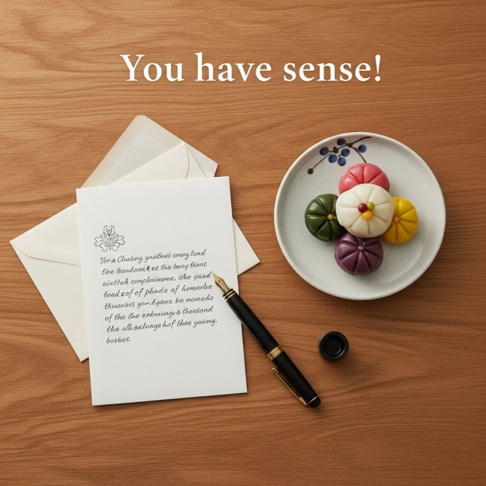 앞서 말한 4가지 법칙을 담아, 짧지만 진심이 느껴지는 한두 문장이면 충분합니다.