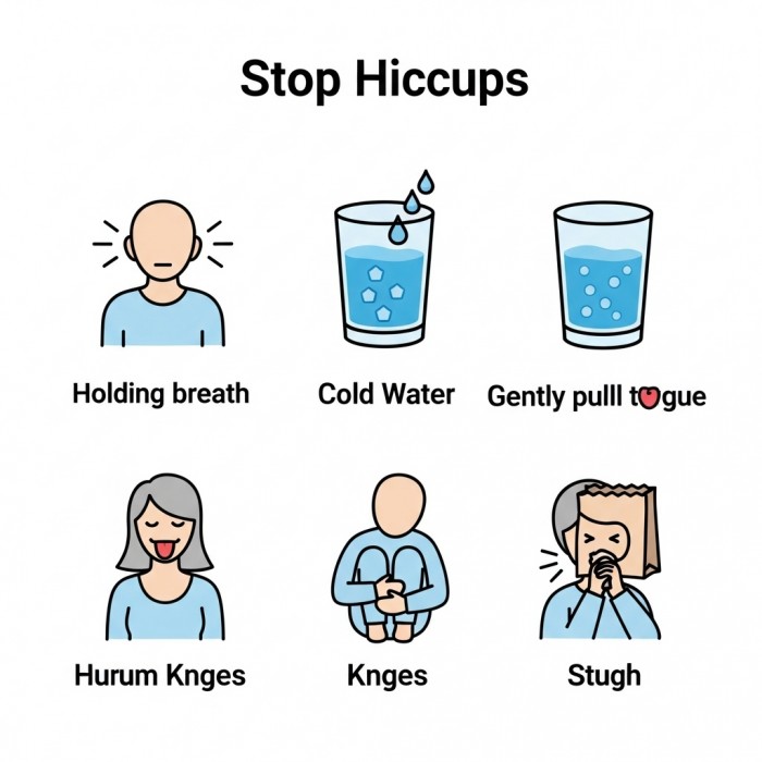 깨끗한 손으로 혀를 잡아 부드럽게 앞으로 당겨주거나, 혀 안쪽에 설탕 한 스푼을 올려두고 천천히 녹여 먹으면, 혀의 신경(설인신경)이 강하게 자극되어 딸꾹질 반사를 멈추게 할 수 있습니다. - 4. 무릎을 가슴 쪽으로 당겨 안기