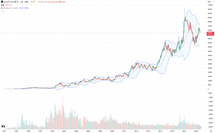 삼성전자(005930)의 혁신과 가장 인기 있는 제품, 월봉 주식 차트