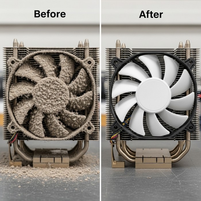 쿨러(팬)에 먼지가 솜이불처럼 꽉 막혀서