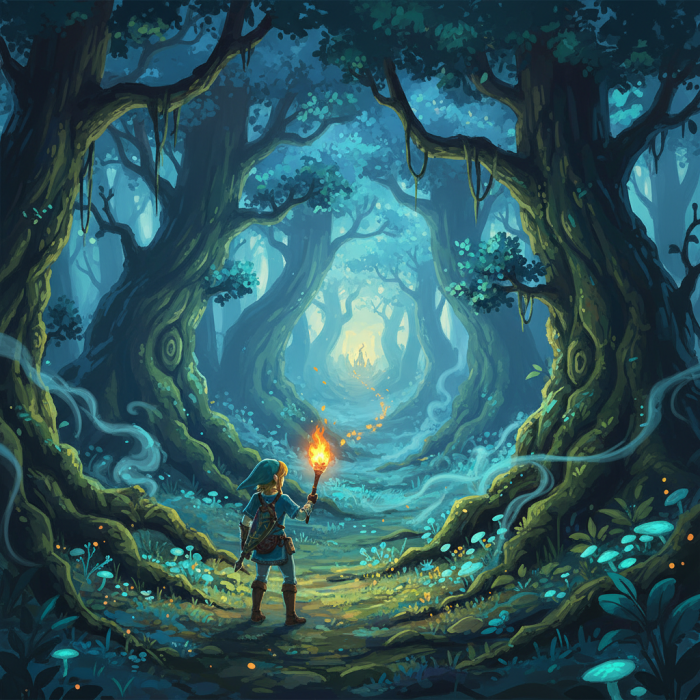마스터 소드는 하이랄 대삼림의 '코로그의 숲' 중앙에 꽂혀 있습니다. 이곳에 도달하기 위해서는 '미로숲'을 통과해야 하는데, 단순히 지도를 보고 직진하면 안개가 링크를 감싸며 입구로 강제 송환됩니다. 여기서 팁을 드리자면, 횃불의 불꽃이 휘날리는 방향을 따라가야 합니다.